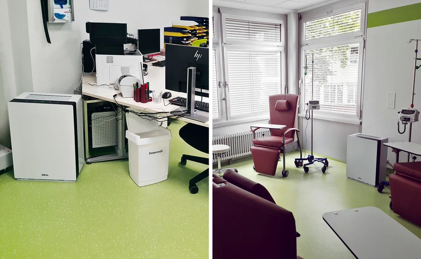 Không phải từ khi đại dịch Covid-19 diễn ra mà trước đó, Bệnh viện Zollernalb đã cân nhắc đến việc trang bị máy lọc không khí. Đặc biệt, khu vực khoa Ung Bướu luôn được ưu tiên xem xét sử dụng các thiết bị lọc không khí di động. Đại dịch đã thúc đẩy kế hoạch này diễn ra nhanh hơn và dẫn đến quyết định đầu tư cụ thể. Bởi khi hệ miễn dịch của bệnh nhân đã suy yếu, cách bảo vệ tốt nhất trước nguy cơ nhiễm bệnh là hạn chế tối đa nguồn lây và cắt đứt chuỗi lây nhiễm. Máy lọc không khí hỗ trợ hiệu quả trong việc này, giúp giảm đáng kể sự lan truyền của các chất gây ô nhiễm và vi khuẩn, vi rút trong không khí.