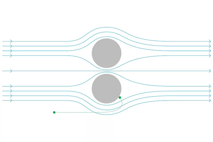 Theo nguyên lý, các hạt càng nặng sẽ càng rơi nhanh hơn. Khi di chuyển trong không khí, phần lớn những hạt này va chạm vào các sợi lọc và bị giữ lại, góp phần làm sạch hiệu quả không khí.