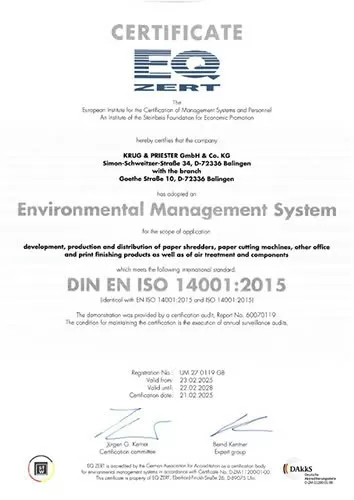 Chứng chỉ ISO 14001:2015 về quản lý môi trường